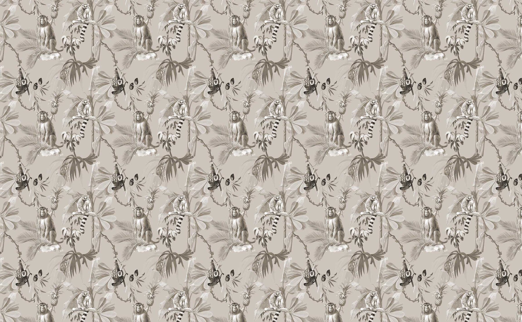 Satisfaction GuaranteedHanging monkeys and lemurs with plentiful palms create a whimsical space, where imaginations can run wild! With soft grey tones, this wallpaper creates a timeless and creative look that is perfect for children's rooms, bath rooms, and more.åÊ