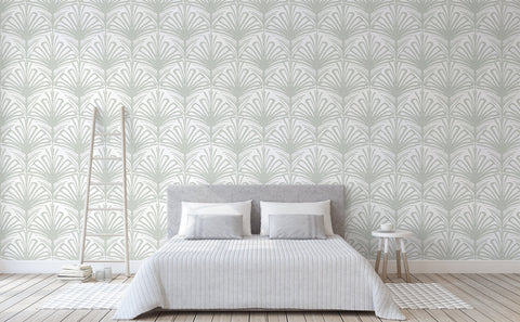 Satisfaction GuaranteedBold botanic inspired fans, beautiful and timeless. Featuring stylized fan palm leaves in a soft sea salt green on a pale cream background. Perfect for contemporary or coastal interiors, this design adds elegance and tranquility, creating a light and breezy ambiance. Ideal for living rooms, bedrooms, and bathrooms, this timesless design blends modern sophistication with natural beauty.
