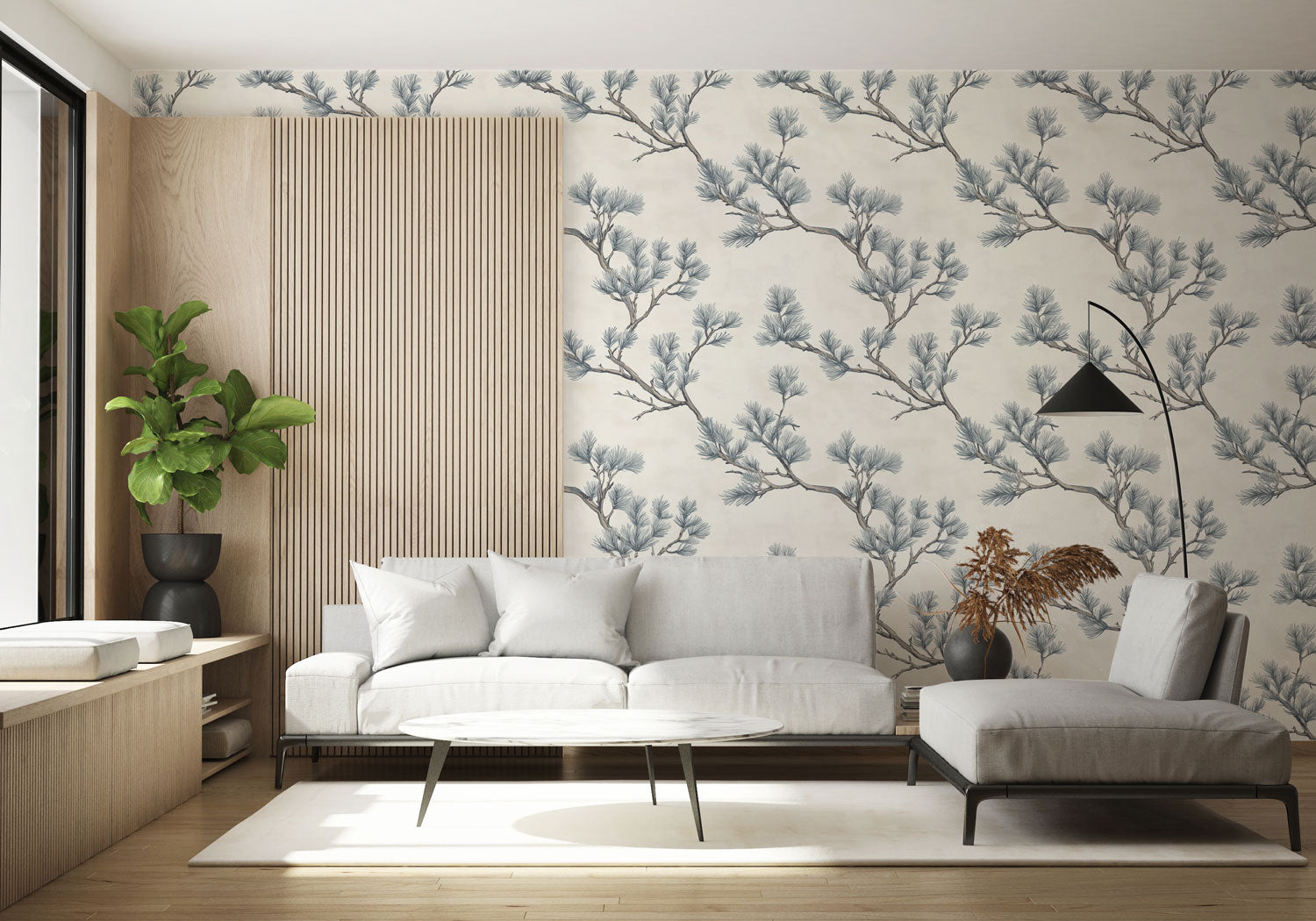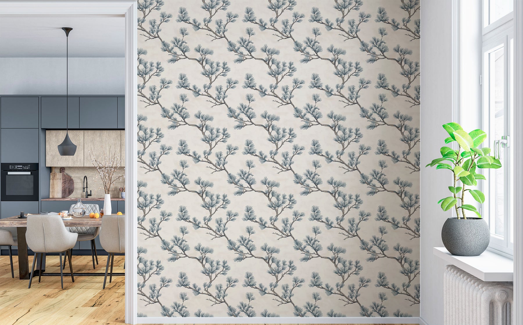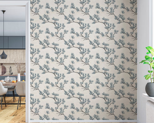 Satisfaction GuaranteedThis elegant wallpaper design features delicate pine branches stretching gracefully across a soft, ivory background. The branches are illustrated with fine detail in muted brown tones, while the pine needles are rendered in a cool, dusty blue, giving the design a calming, wintry feel. The composition evokes a sense of quiet movement and natural simplicity, perfect for creating a serene and sophisticated atmosphere in any room. Ideal for both modern and traditional interiors, this wallpaper brings the tranquility of a peaceful pine grove indoors.