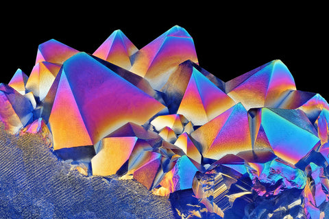 Satisfaction GuaranteedA bold metallic rainbow statement, this titanium aura crystal is inspiring and artistic. The wall mural features brilliant blue, pink, and golden yellow peaks that pop against a black background. Wall mural available in both removable peel-and-stick and permanent wallpapers. Printed with child-safe inks.