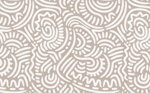 Satisfaction GuaranteedArt nouveau meets ancient Mayan art in beige, swirling, curvy strokes on a textured light brown background. Available in both removable peel-and-stick and permanent wallpapers. Printed with child-safe inks.