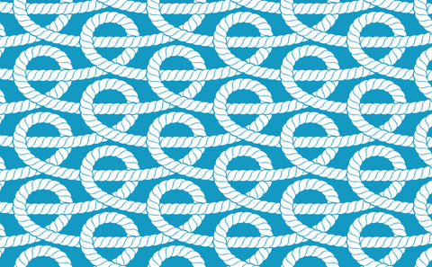 Satisfaction GuaranteedAn interlocking pattern of rope loops, with white rope set against a pastel blue background. Perfect for a nautical themed room. Available in both removable peel-and-stick and permanent wallpapers. Printed with child-safe inks.