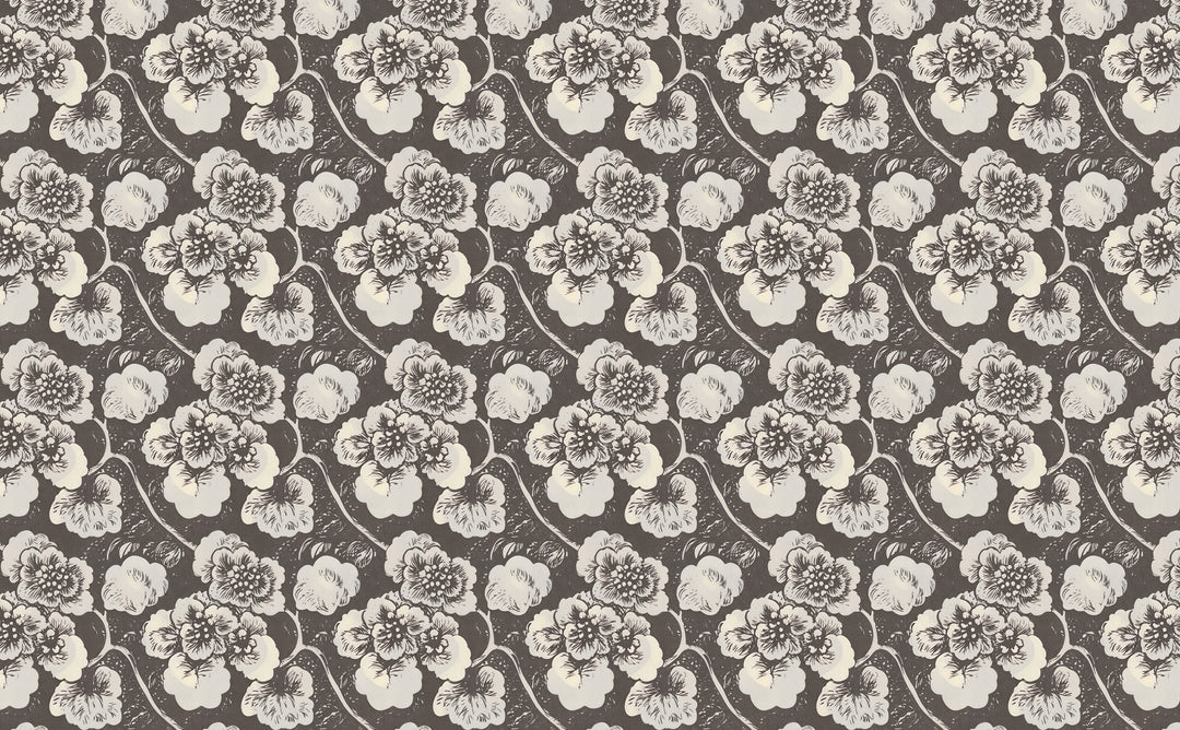 Satisfaction GuaranteedThe intricate hand-drawn floral motifs are rendered in soft ivory and off-white tones, gracefully set against a rich, charcoal gray background.