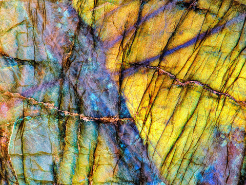 Satisfaction GuaranteedThe strong protective properties of labradorite come to life in this lustrous wall mural. Iridescent yellow and indigo blue mix with bold textural interest to create a revitalizing style statement. Wall mural available in both removable peel-and-stick and permanent wallpapers. Printed with child-safe inks.