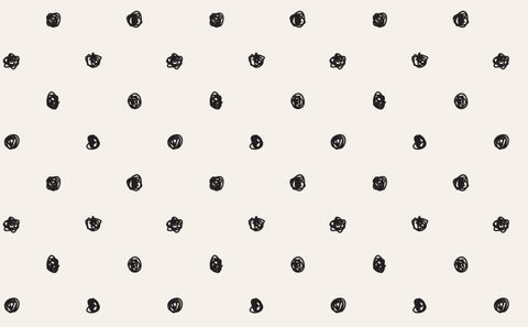 Satisfaction GuaranteedRows of hand drawn, scribbled black dots on an off-white background. Available in both removable peel-and-stick and permanent wallpapers. Printed with child-safe inks.