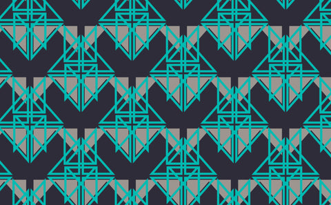 Satisfaction GuaranteedThis unique geometric pattern features teal green line shapes superimposed above triangular solid sections of alternating gray and black. Available in both removable peel-and-stick and permanent wallpapers. Printed with child-safe inks.